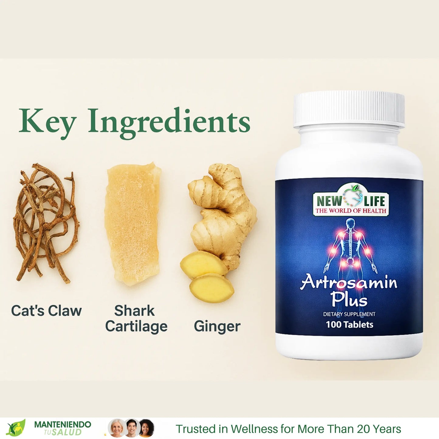 Artrosamin Plus is formulated with key ingredients like Glucosamine, Turmeric, Cats Claw, and Ginger, which work synergistically to provide significant relief from arthritis. Glucosamine is known for its ability to support joint structure and function, making it a vital component for anyone suffering from joint discomfort. Additionally, Turmeric is renowned for its anti-inflammatory properties. Therefore, the combination of these ingredients not only helps ease pain but also supports overall joint well-being.