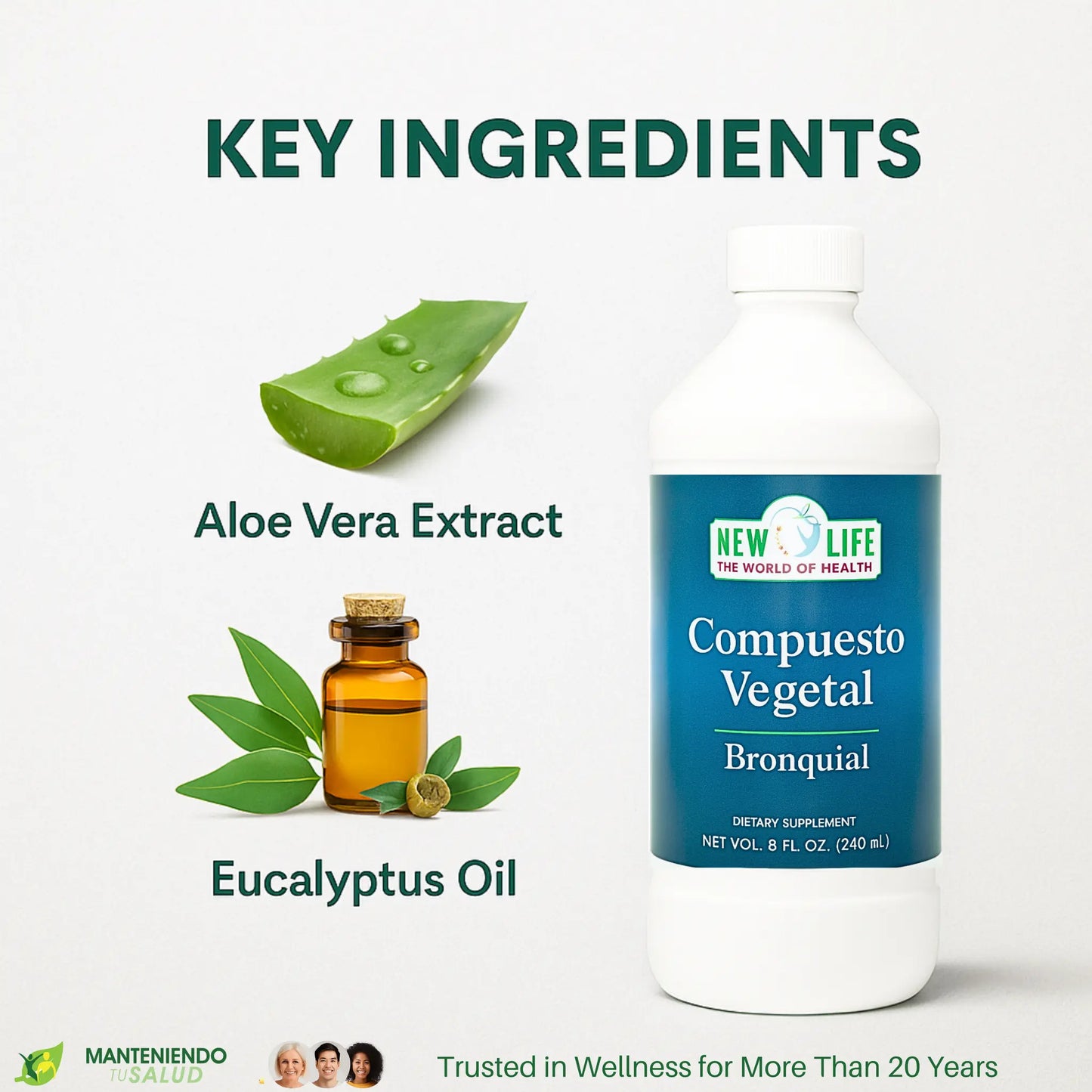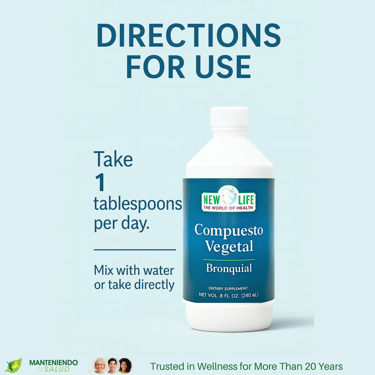La presentación del Compuesto Vegetal en un práctico envase de 8 oz. facilita su uso diario. Así mismo, es fácil de incluir en la rutina diaria, y puede ser utilizado por aquellos que buscan un enfoque natural para su salud bronquial.
