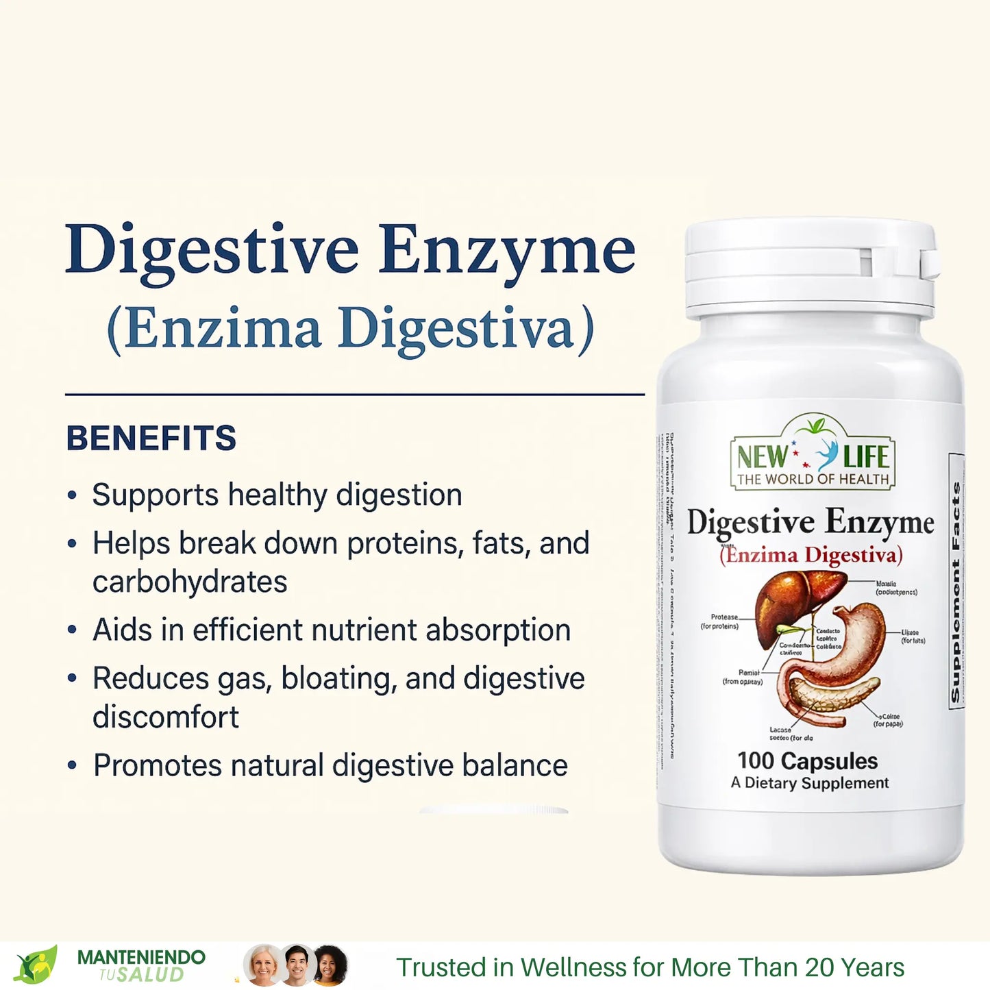 With 100 easy-to-swallow capsules per bottle, the Digestive Enzyme supplement offers a convenient way to improve your digestive health. You can take it just before meals to promote optimal digestion and relieve any discomfort you may be experiencing. Since effective digestive support can lead to improved energy levels and well-being, making this a part of your daily routine may be the change you need for a healthier lifestyle.