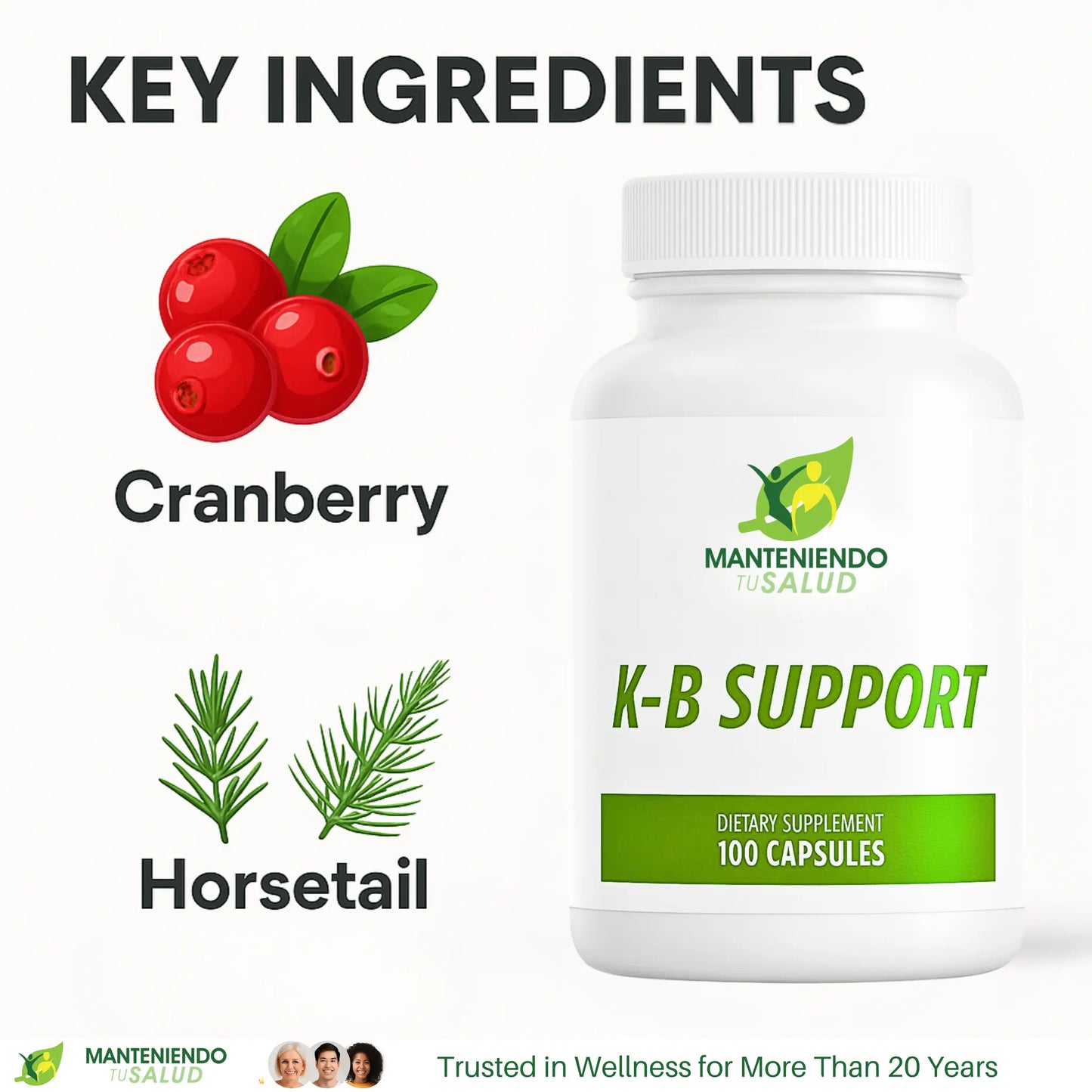 Fortalece tus riñones y potencia tu bienestar con nuestro KB Support, 100 cápsulas. Este suplemento altamente eficaz está elaborado con extracto de arándano de calidad, lo que lo convierte en una excelente opción para las personas que desean mejorar su salud renal.