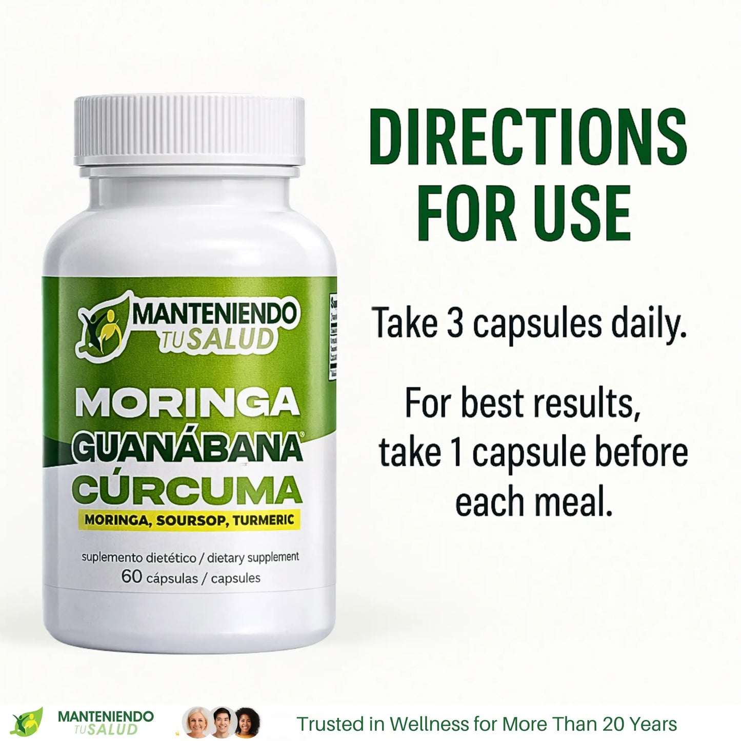 Curcumin, derived from turmeric, is celebrated for its anti-inflammatory and antioxidant properties. These properties contribute to improved cells well-being, allowing your body to function at its best. When combined with Moringa and Guanabana, Curcumin enhances the overall effectiveness of the supplement. Therefore, taking these capsules regularly can help support your overall well-being in a natural way.