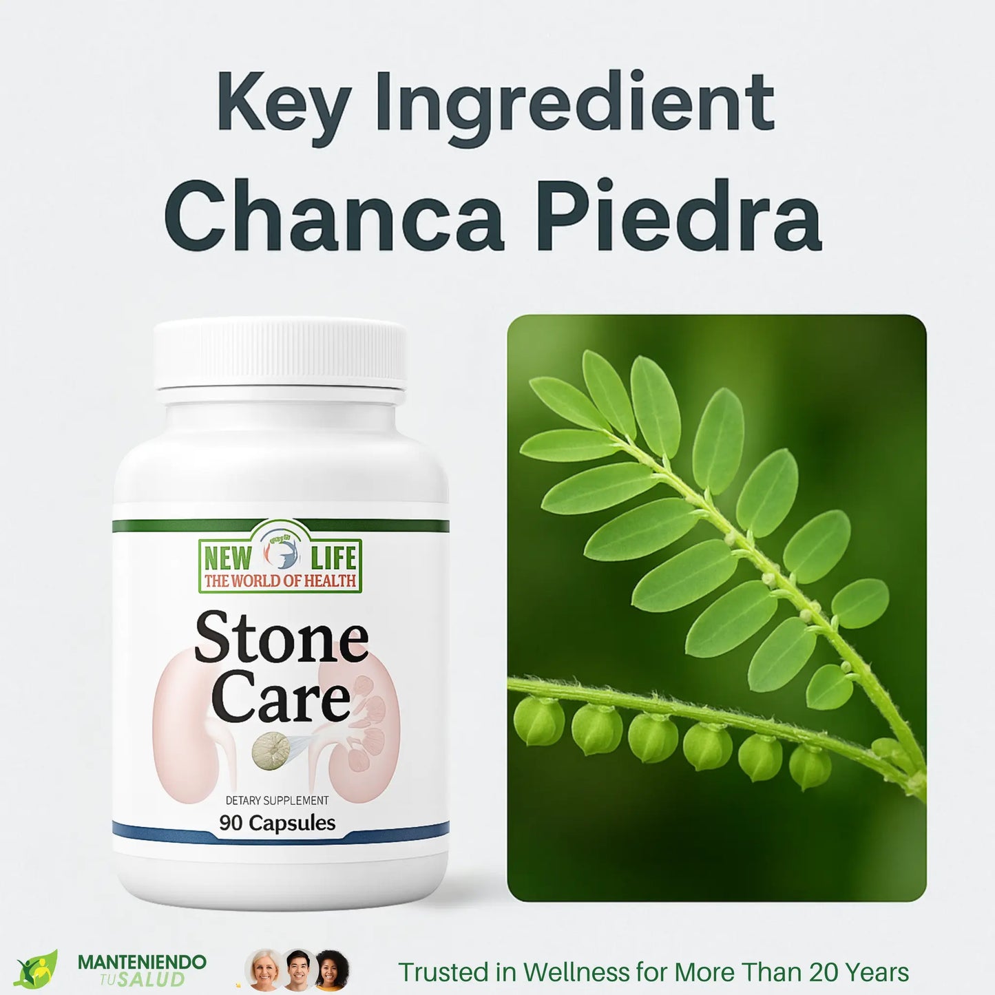 Stone Care no es sólo un complemento para la salud. Es una poderosa mezcla de 1000 mg de Chanca Piedra, diseñada para brindar el máximo bienestar renal. Elaborado con cuidado, nos hemos asegurado de que se incluyan ingredientes de la más alta calidad en cada una de las 90 cápsulas.