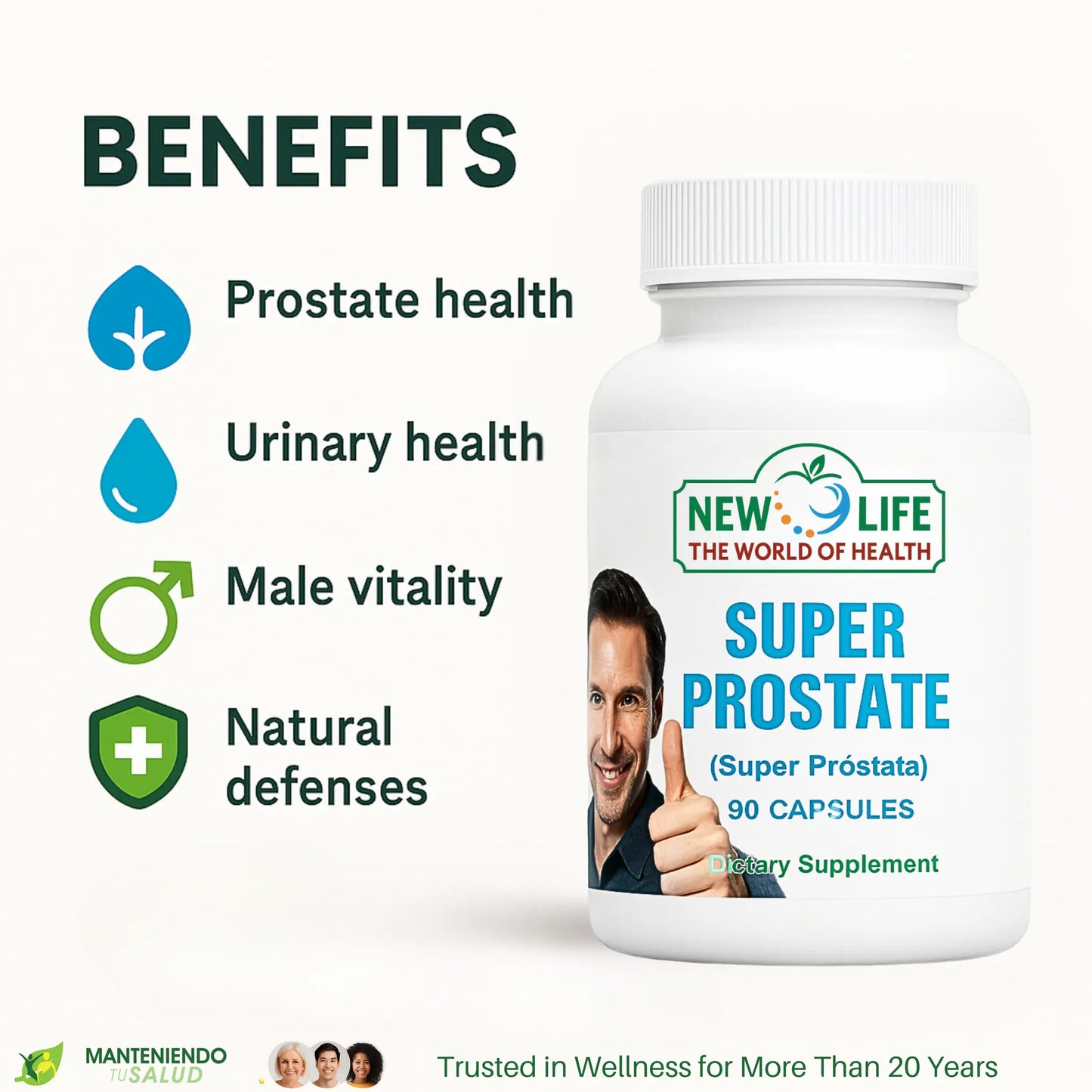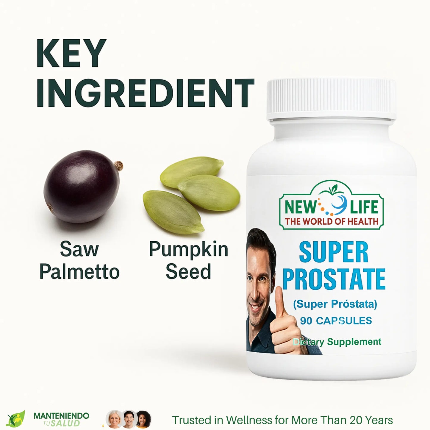 Super Prostate: su suplemento ideal para el bienestar de la próstata. Al contener Saw Palmetto y una mezcla de otros potentes suplementos herbales, está diseñado para promover y mantener una próstata saludable. Es un complemento esencial a tu rutina diaria para vivir una vida en bienestar y equilibrio. No dejes que la edad te desanime. Asegura tu próstata y tu bienestar general con Super Prostate, porque te mereces lo mejor.