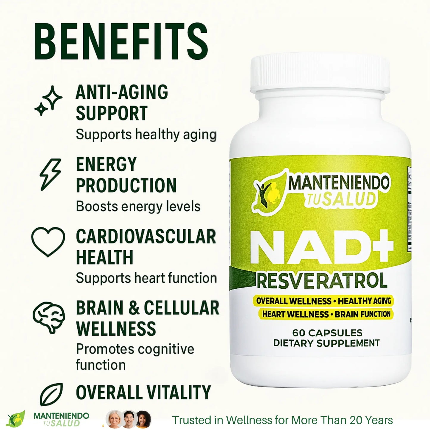 NAD Plus Resveratrol combines two powerful compounds essential for your well-being. NAD (Nicotinamide Adenine Dinucleotide) plays a critical role in energy production, and it helps your cells function efficiently. Research suggests that higher levels of NAD can boost your energy, improve cellular repair, and support brain function. This means that by integrating NAD Plus into your daily routine, you may experience enhanced vitality and overall well-being.