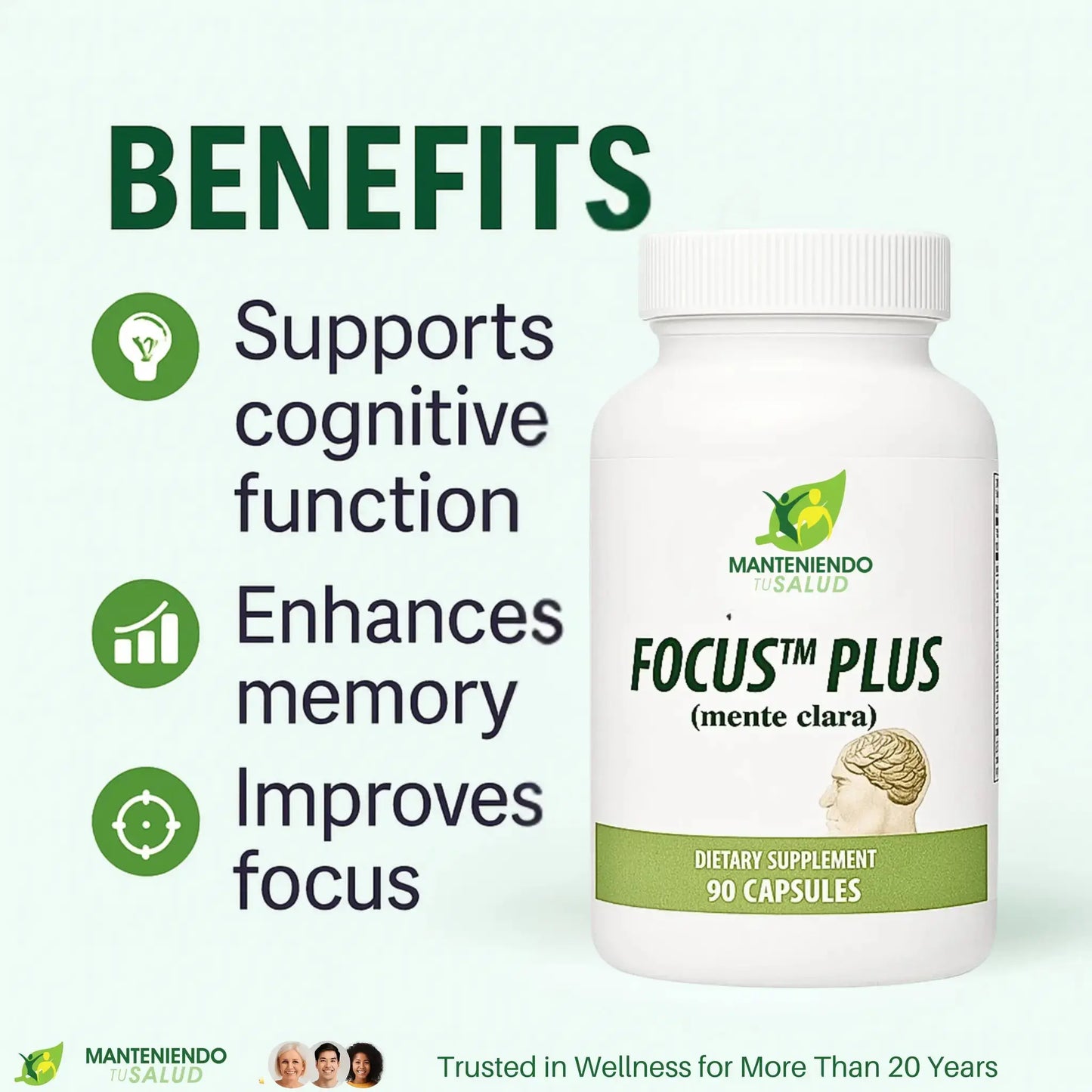 Focus Plus: La norepinefrina y la dopamina son neurotransmisores clave para el mantenimiento del estado de alerta y la agudeza mental y para promover una sensación de bienestar general. Estos dos neurotransmisores se producen en el cuerpo a partir de los precursores de aminoácidos L-tirosina y L-fenilalanina. Este proceso de conversión también requiere vitaminas C y B-6 como cofactores. Focus Plus™ combina estos importantes nutrientes con otros ingredientes como Ginkgo biloba y DMAE para complementar esta fórmula.