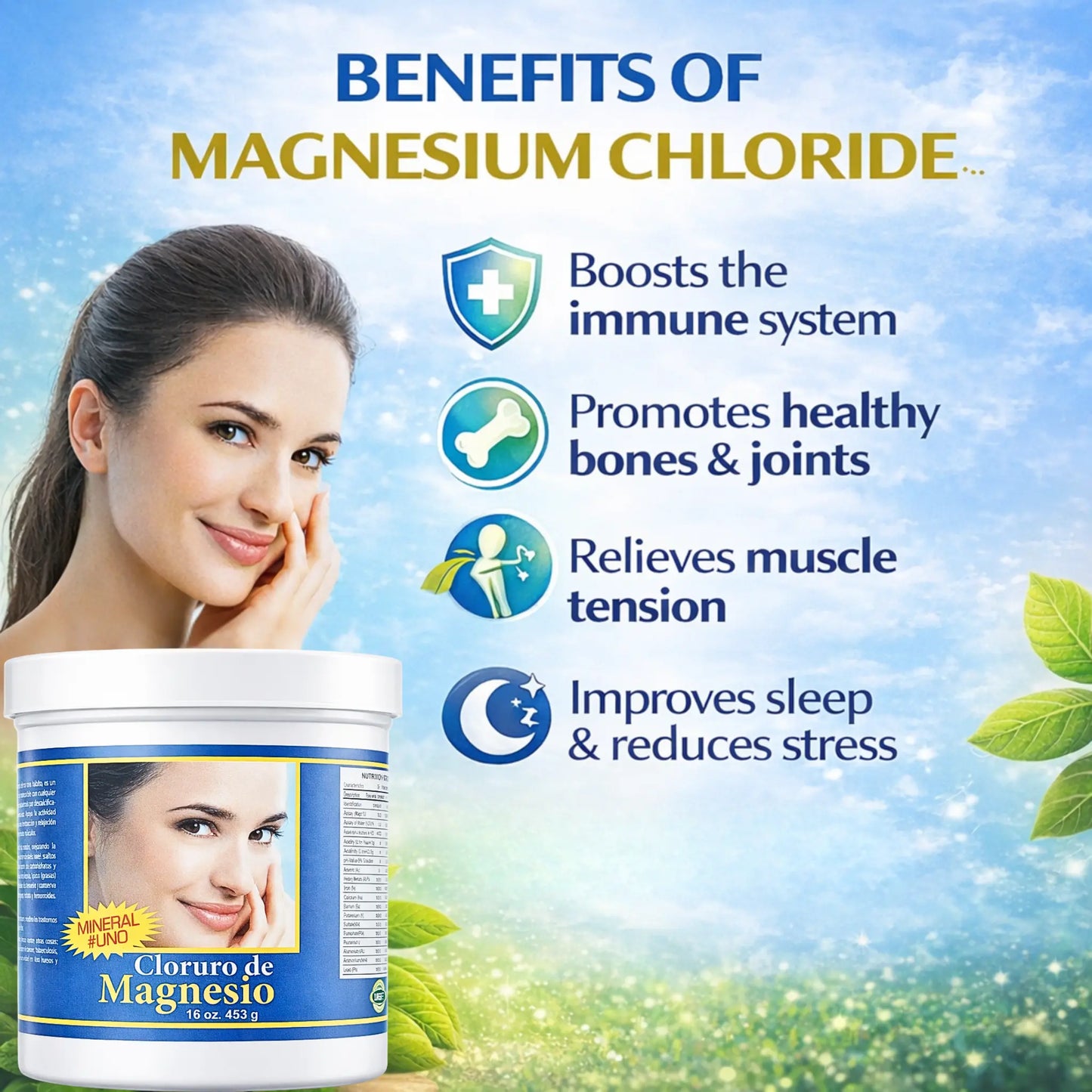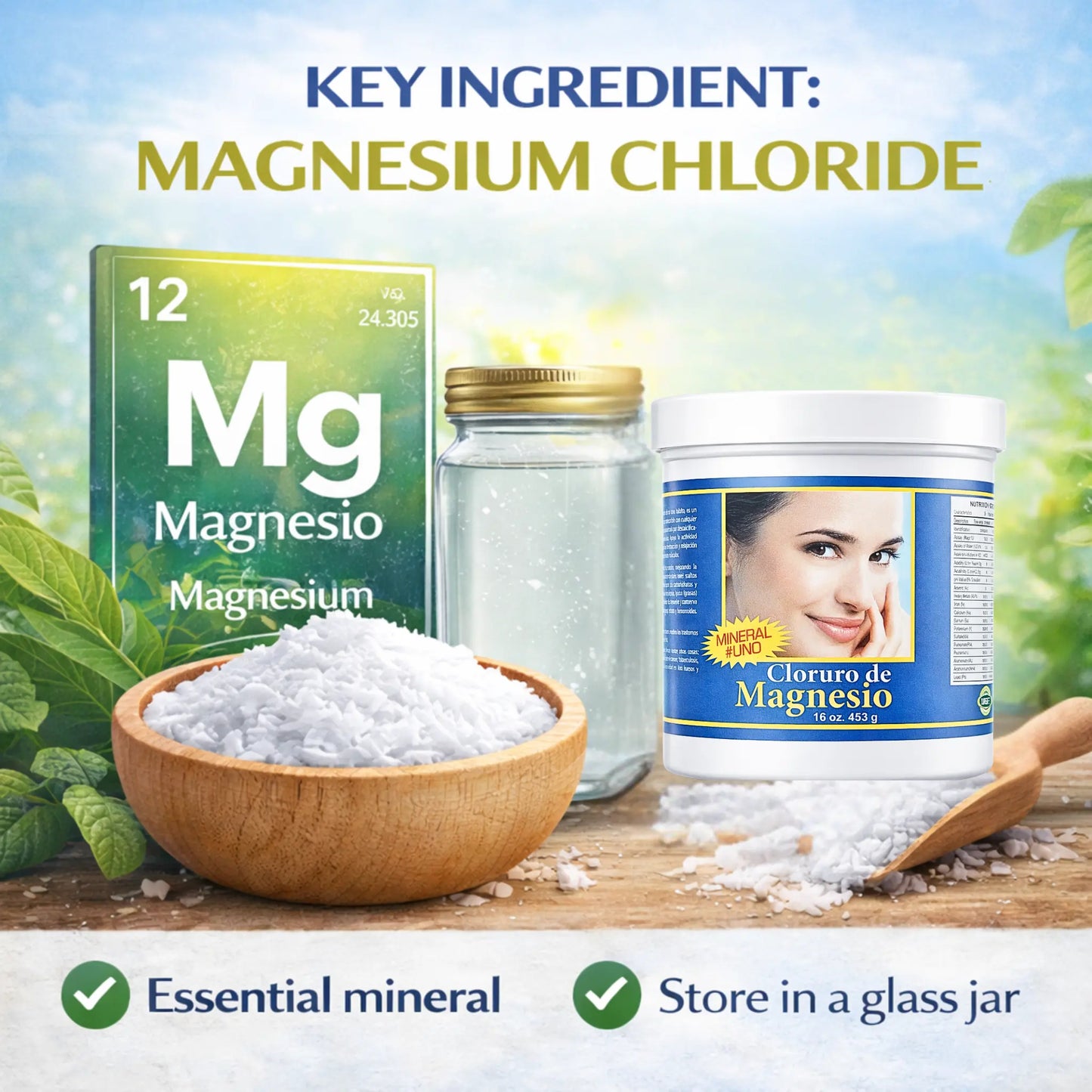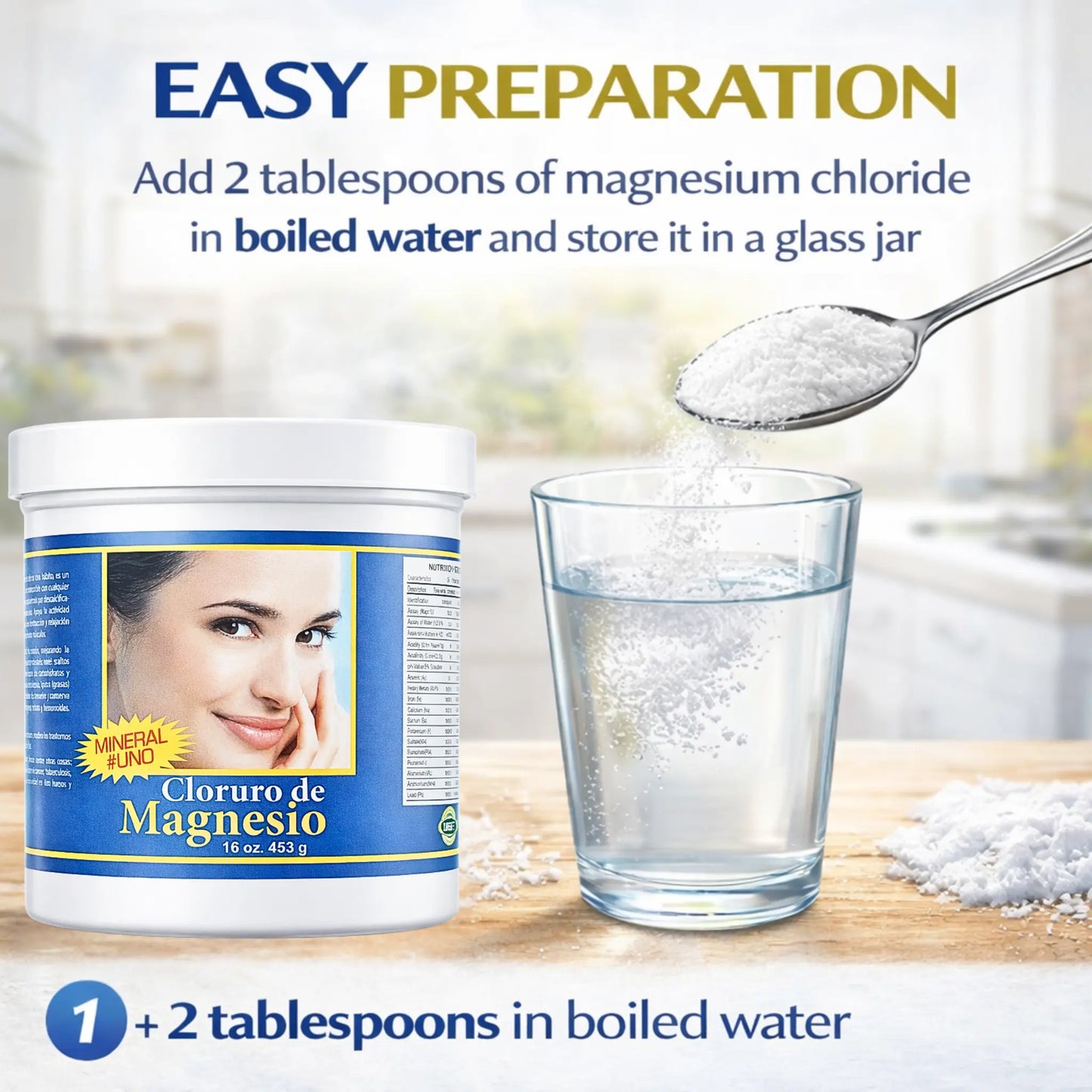 Magnesium Chloride is highly appreciated for its effectiveness, but also for its great versatility. It can be easily incorporated into various recipes, drinks and even used for relaxing baths. Always thinking about your well-being, we offer this product in a comfortable 16oz packaging, so you can enjoy its benefits in the long term.