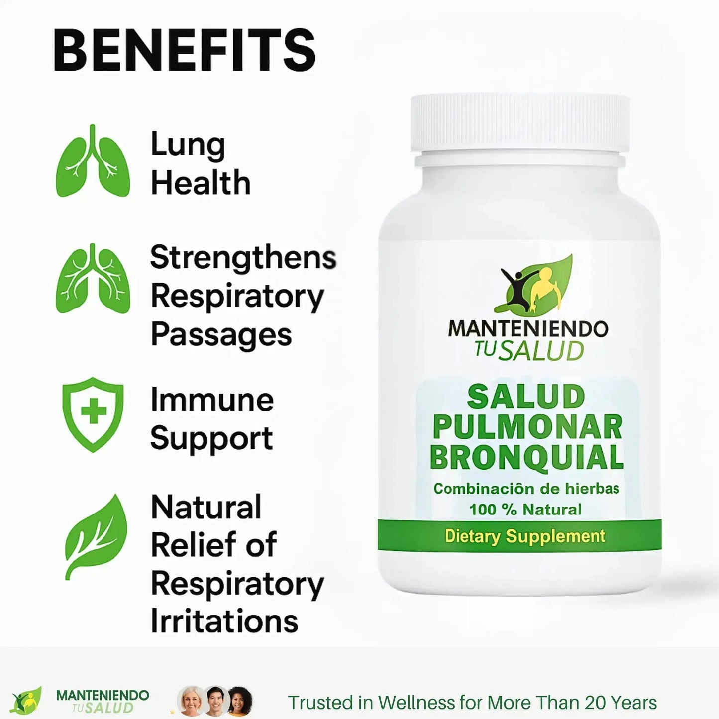Salud Pulmonar: is a combination of key vitamins, minerals and herbal extracts that nutritionally supports healthy respiratory functions.