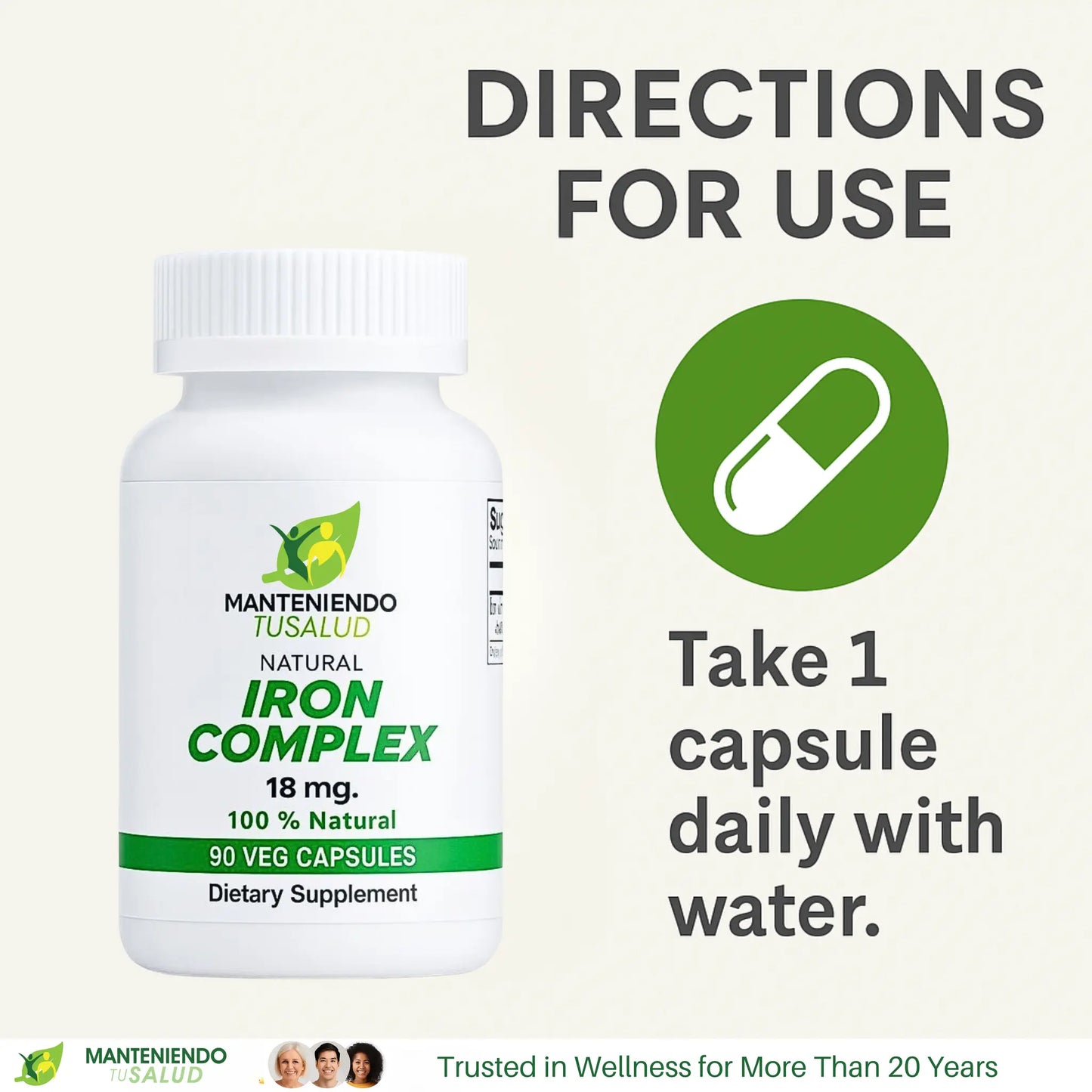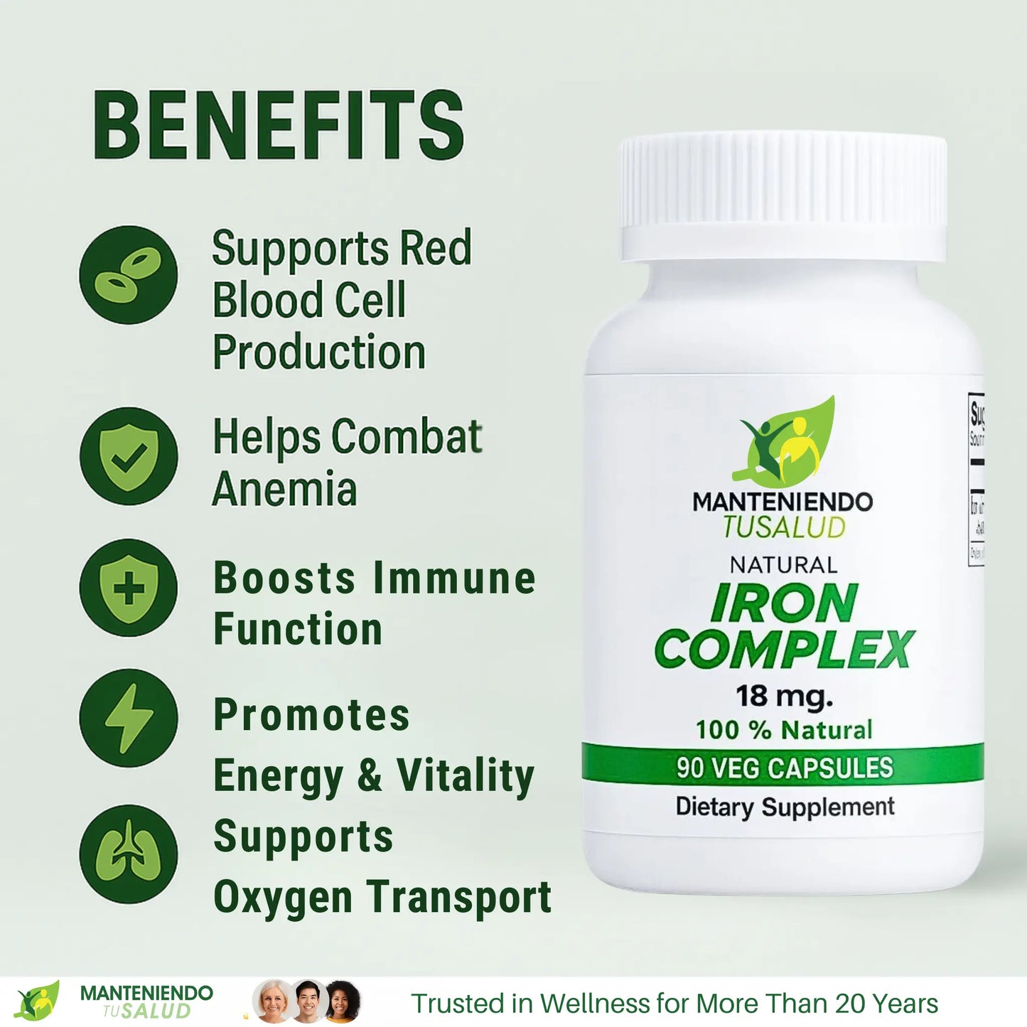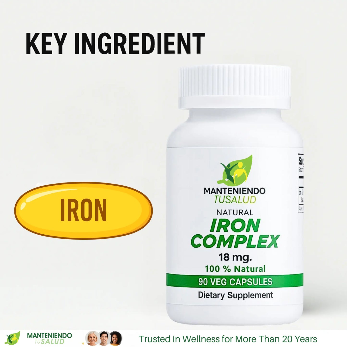 Iron Complex, 18mg, 90 Capsules Manteniendo Tu Salud