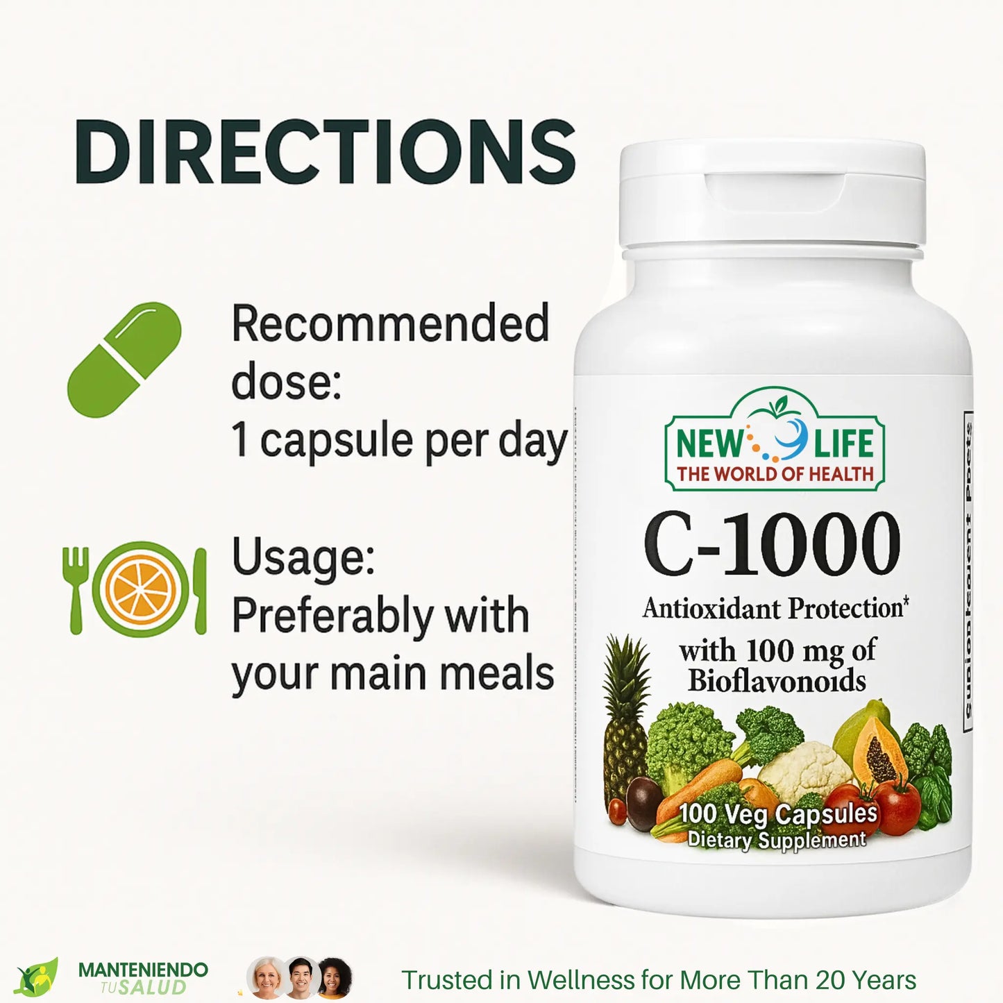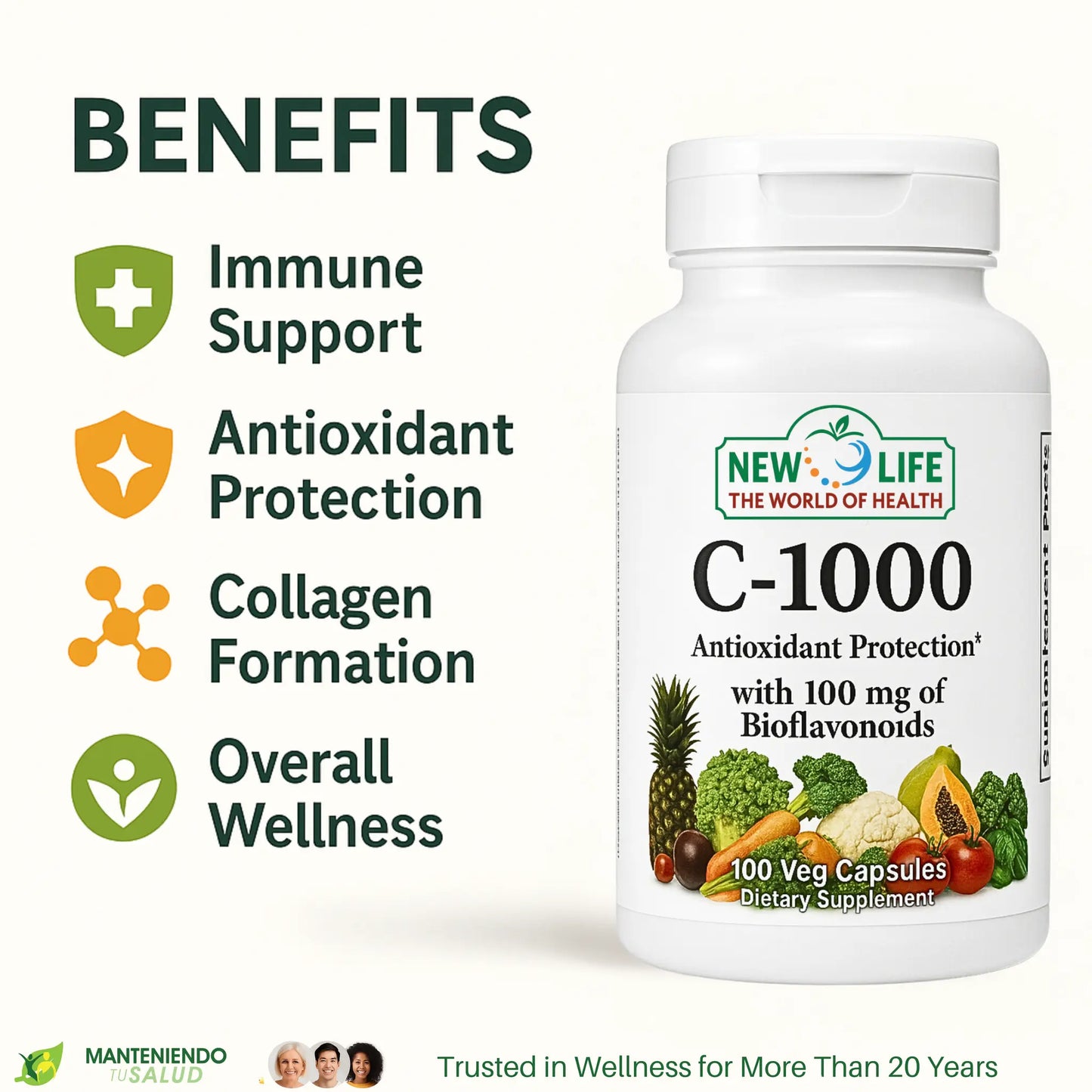 Aumente su bienestar y mantenga su sistema inmunológico resistente con nuestra vitamin C premium. Este suplemento natural, encapsulado en cápsulas vegetales de 1000 mg, está especialmente formulado para respaldar su salud e inmunidad. Repletas de antioxidantes, estas cápsulas desempeñan un papel vital en múltiples procesos corporales y ayudan a mantener el bienestar general.