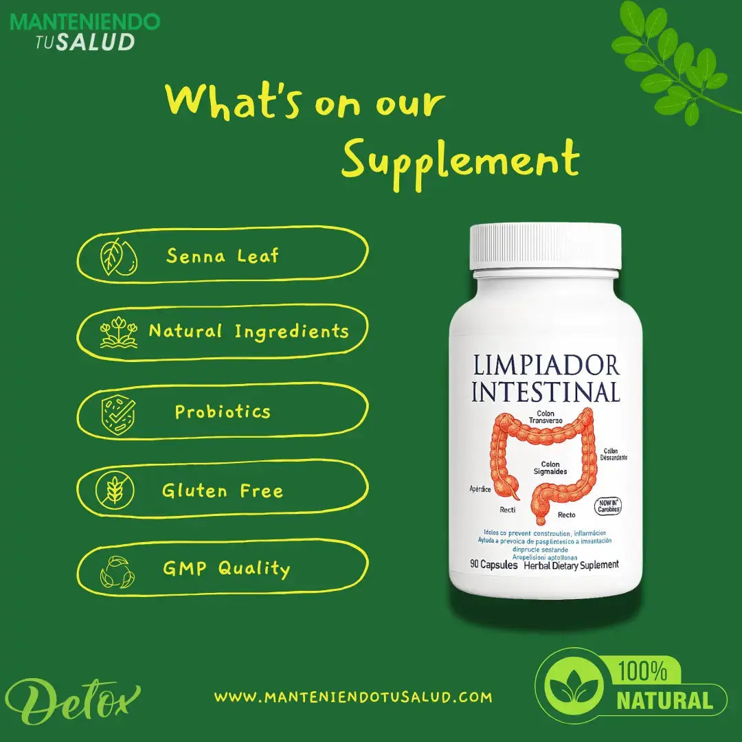 Our Limpiador Intestinal features Senna Leaf, a natural ingredient known for its detoxing support. It helps promote regular bowel movements, which is essential for a healthy digestive system. So, if you struggle with constipation or irregularity, this product can be your solution. The capsules are easy to take, making it convenient to incorporate detoxing into your daily routine.