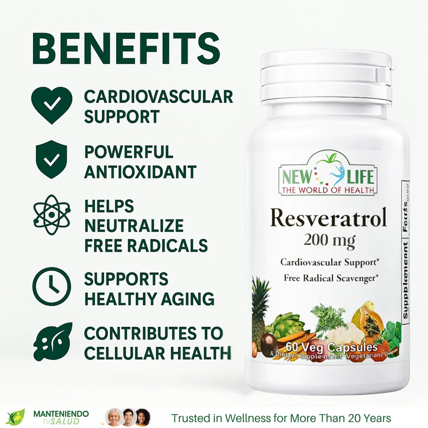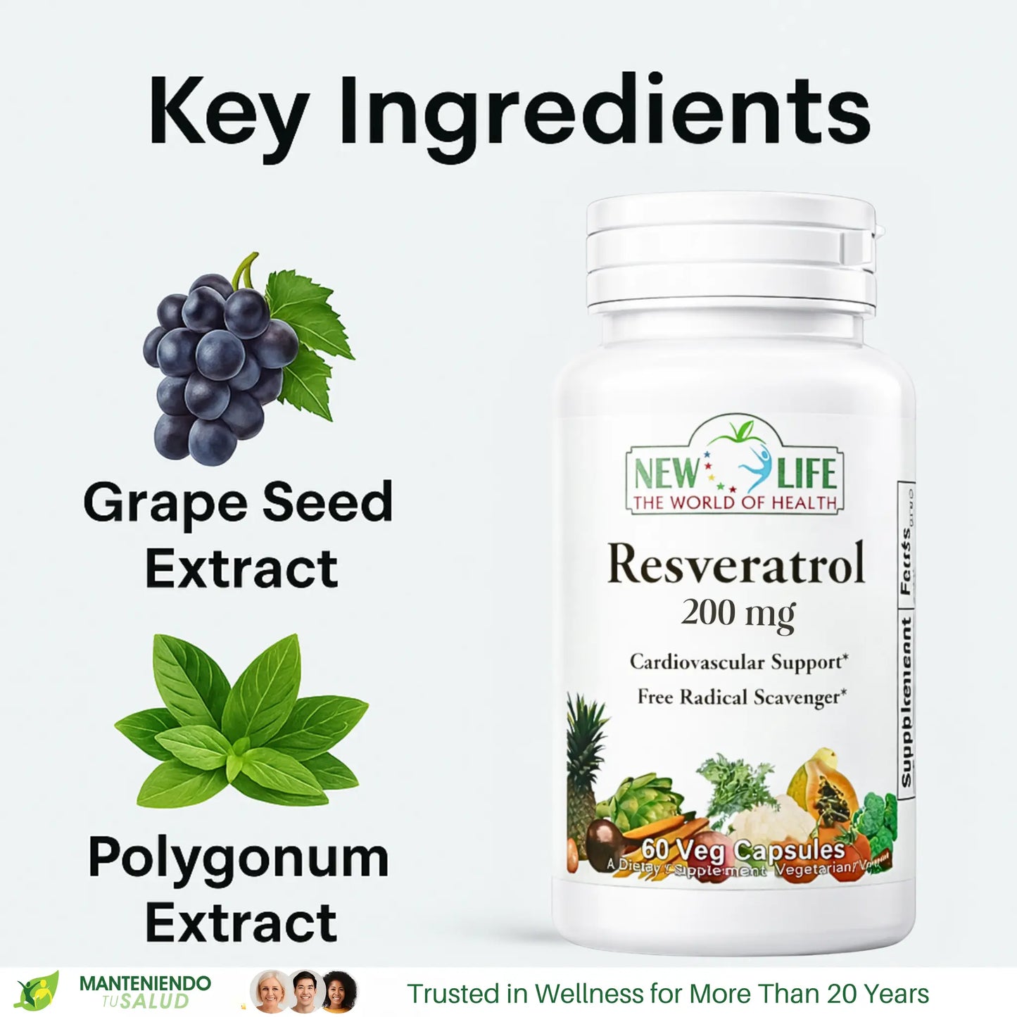 Resveratrol is a natural compound found in various plants, particularly in the skin of red grapes. It is renowned for its potential health benefits, especially concerning cardiovascular support. This powerful antioxidant functions as a free radical scavenger, meaning it helps neutralize harmful molecules that can cause damage to cells. In this way, Resveratrol aids in promoting overall wellbeing and supports heart health, making it a great addition to your daily supplement routine.