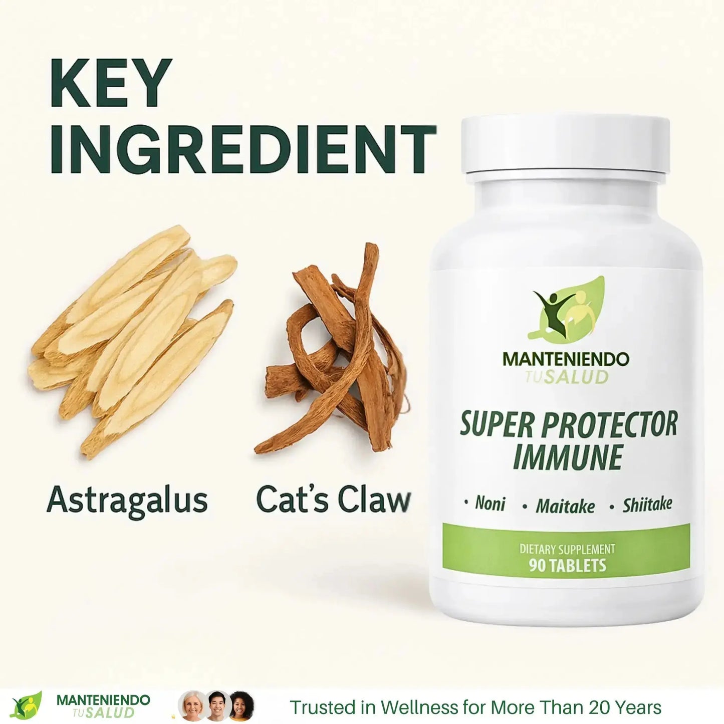 Super Protector Immune is a powerful supplement designed to enhance your immune function. It contains Cat's Claw, a natural herb known for its immune-boosting properties. This ingredient helps your body fight off infections and stay resilient against various illnesses. When you take these tablets regularly, you may notice a significant improvement in your body's ability to ward off viruses and bacteria, providing excellent support for your overall well-being.